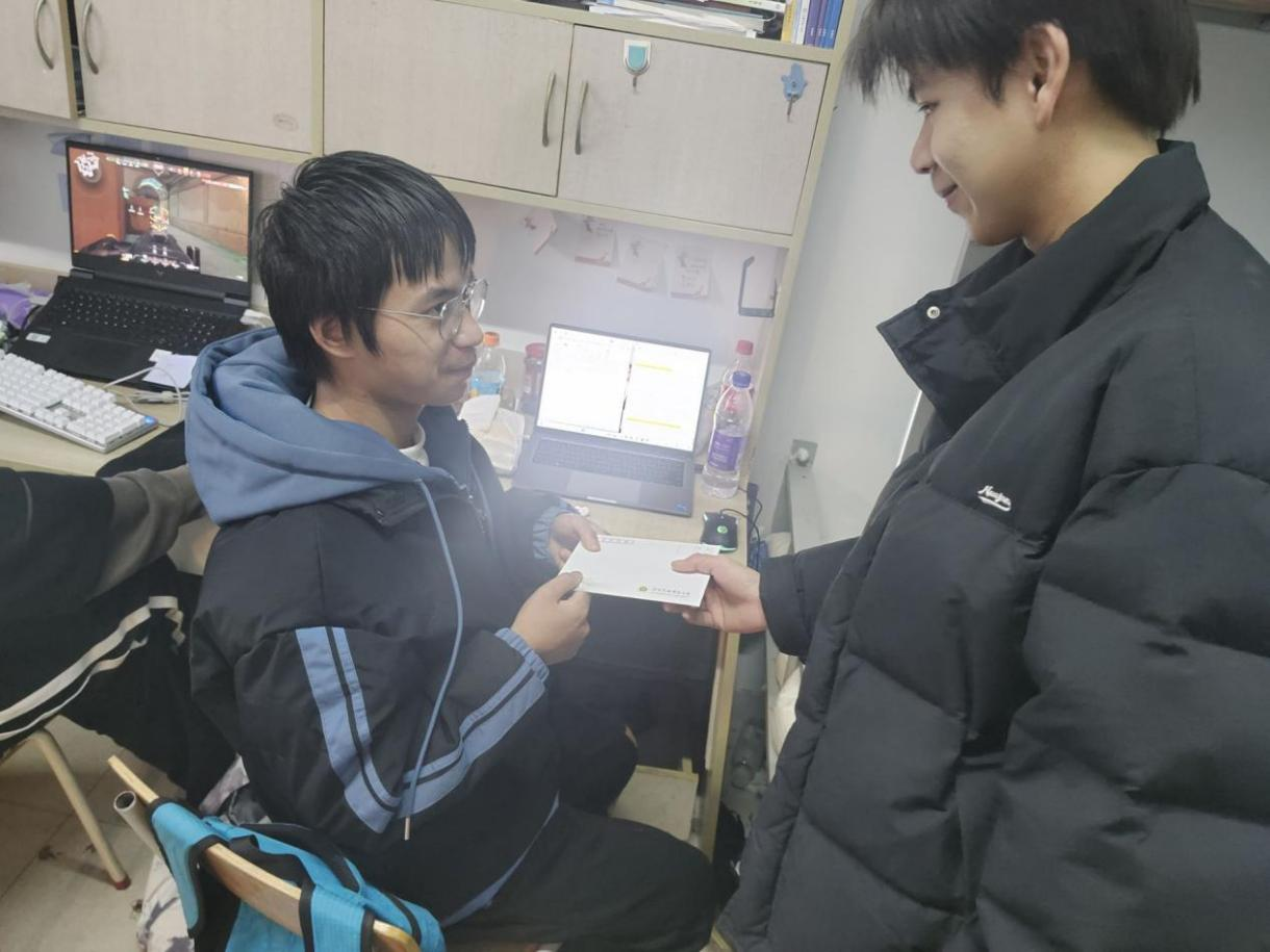 活动前期,同学们踊跃参与,用温暖的笔触写下对不懈努力的考研学子的鼓励与支持,不仅让同学们感受到文学的力量,也给考研学子送去温暖、增添动力。12月13日,一封封匿名信伴着直播网 领导、老师们精心准备的“考研加油礼包”发放到每一位考研学子的手中。考研学子孙楠在收到匿名信后给学生会权益邮箱留言:“最近考研的压力比较大,但读到这封信后,心里就像有一股暖流在徜徉,很温暖,感谢学弟学妹的鼓励!”