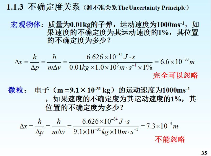 “波粒二象性”导致微观粒子就有可量化的波长,必然结果是“测不准原理”,即:测量的位置误差