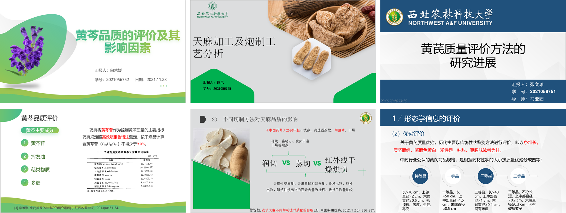 图3为学生PPT汇报图片示例,大家通过查阅文献,总结汇报,多数同学提出了自己对中药材质量评价的观点与看法,这不仅锻炼了学生独立思考的能力,同时使学生对中药品质评价及质量标准的建立也有了较深刻的认识。